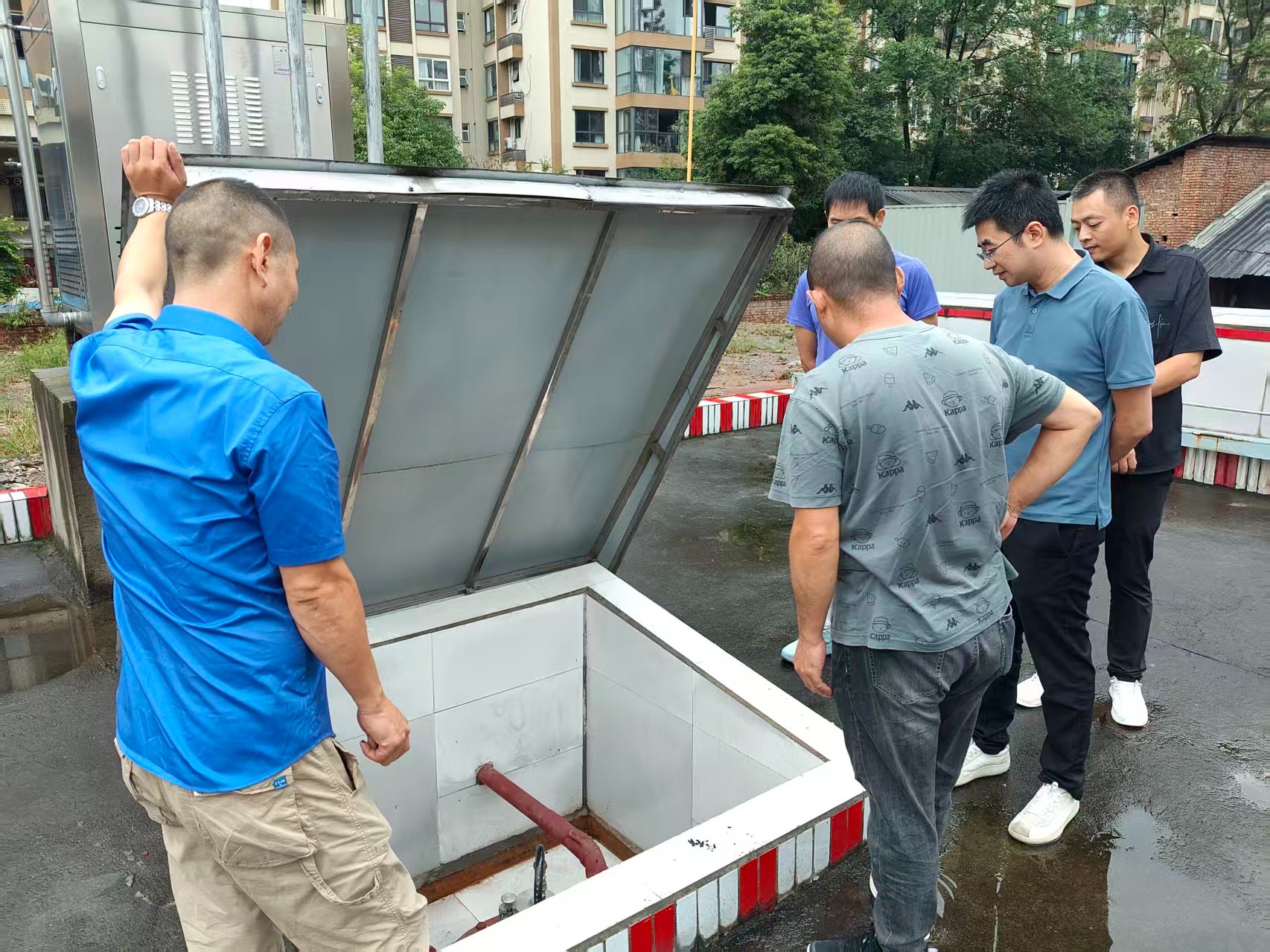 汛情就是命令。名山川燃成立以主要负责人为总指挥的防汛应急工作专班,第一时间赶赴加油加气站一线,现场统筹抢险部署与指挥调度,站点迅速启动预案,多维度推进应急处置:立即停止加油加气作业,同步切断现场电源,并关闭储油(气)设备设施进出管线阀门,从源头阻断安全风险。随后,快速在进出口设警戒线,明确危险边界,严防无关人员车辆误入,保障现场秩序,针对雨水浸泡隐患,抢险人员用提前备好的沙袋、防水隔板,在加油机、储罐区操作井、站房门口、配电室等关键处紧急筑造防水围堰,为核心设备筑牢坚实屏障,最大程度减少雨水损害。同时,专业工程人员奔赴蒙顶山区域、河道沿线及防汛重点点位,逐点排查隐患,用行动诠释“汛期不停歇,安全不打烊”的承诺。