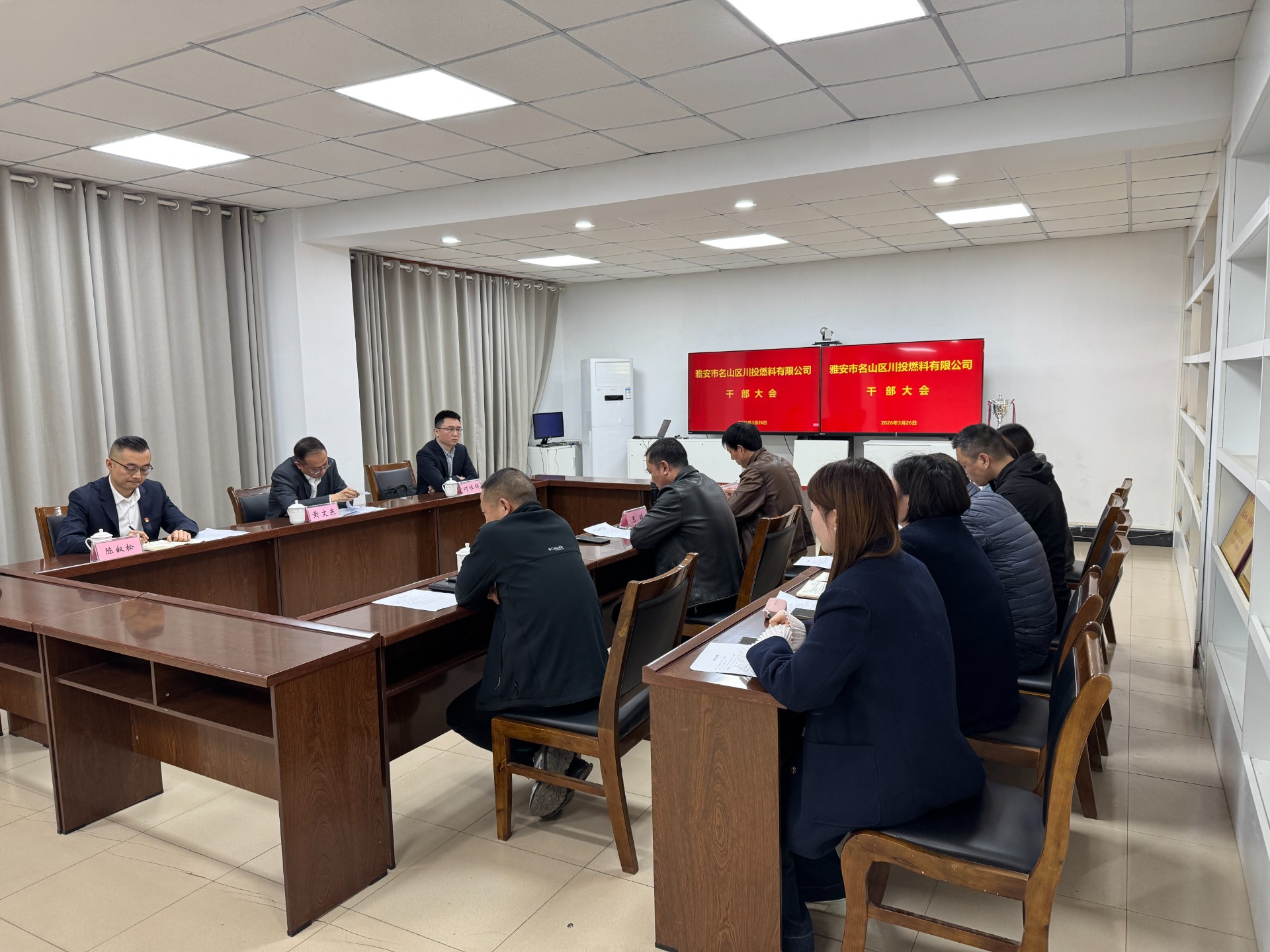 3月26日下午,名山川燃召开干部大会。川投燃电党委委员、纪委书记黄文东,党委组织部(人力资源部)副部长何梓辉出席会议。名山川燃班子成员、中层干部、员工代表参加会议。